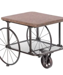 Vintiquewise Accent Decorative Natural Wooden Square Stump Stool, with Wheels for Indoor and Outdoor
