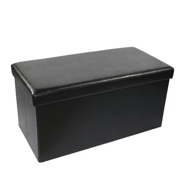 The Collapsible Ottoman is sure to please with its versatility. Provides comfort for tired feet or as an extra seat. Ideal for extra storage space to hide blankets. throw pillows or any sort of items in order to make the house look neat. Removable top provides instant storage while used as a footrest or a seat. For extra space its collapsible sides and bottom all neatly fit inside the top to store it under or behind your armchair or couch.Made of super soft Faux Leather in Black or Brown FeaturesCollapsible Storage OttomanSpecificationsColor: BlackDimension: 30 x 15 x 15 in.Weight: 13 lbs
