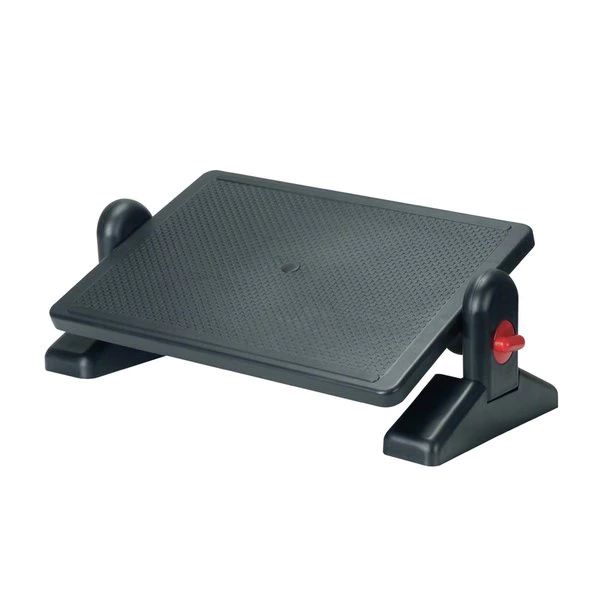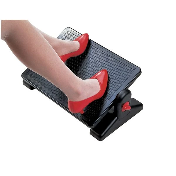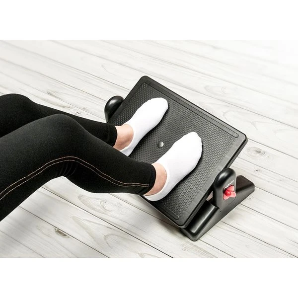 The Aidata Footrest is ergonomically designed to help maintain correct posture and reduce strain and fatigue while sitting. An elevated platform lifts the feet to reduce pressure on the legs, which improves circulation and eases stress on your neck and back. Convenient knobs allow you adjust the platform up to a 35° incline to keep your feet at the most comfortable angle. A large foot platform measuring 16.4” x 11.9” ensures both feet can remain comfortably flat and spaced. The high-impact plastic construction and rubber no-skid grips keep the entire footrest sturdy and in place during use. The Aidata footrest is the perfect accessory to keep your feet comfortably supported while reducing the risk of injury or other health issues caused by bad posture!