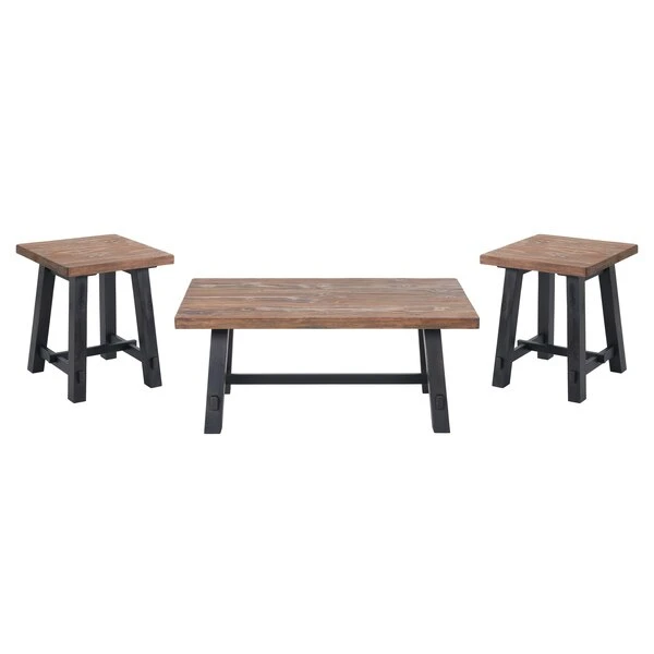 Add a unique touch to your home with this collection The lightly distressed black sawhorse leg design gives it a rustic, yet industrial feel. The solid wood top has a natural finish that features unique markings from the wood grain. This collection is sure to make a statement in your home. Made of solid wood.