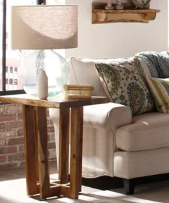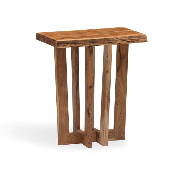 Berkshire is gorgeous natural Acacia wood with live edge and solid legs; uniquely yours as no two pieces are exactly alike. Each tabletop is unique; no two tops will be exactly alike. Constructed of natural acacia wood. Each of our live edge products includes nylon floor protectors. The knots and cracks add to the wood's character. A clear natural finish enhances the beautiful features in each piece of wood.
