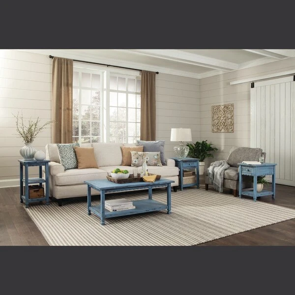 Alaterre Furniture Country Cottage Chairside Table, Blue Antique Finish