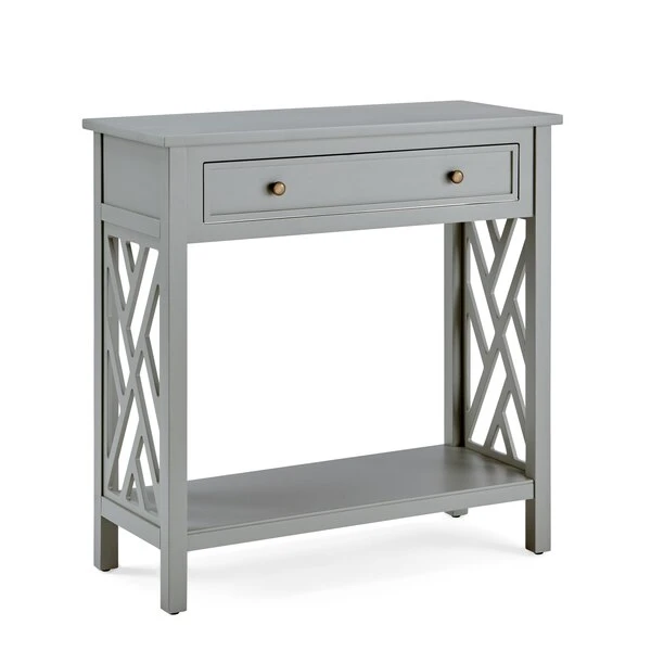 Coventry is a fresh, clean collection that is versatile in any space. The square pattern, open-detailing on each side is airy and offers a unique look for your décor. Each piece offers additional storage or display space with a shelf, drawer, or pull out tray shelf. In both dove gray and white, these pieces are the perfect compliment to your space.