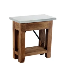 Zinc Metal mixed with Wood and Metal Accents lends Modern Industrial style to your living space. This table offer a balance of sturdy and solid with the lightness of the zinc metal tops; the cross bar accent in the back offers a unique touch. Roomy shelf provide the perfect spot for magazines or a faux plant. These accent tables provide both style and functionality.