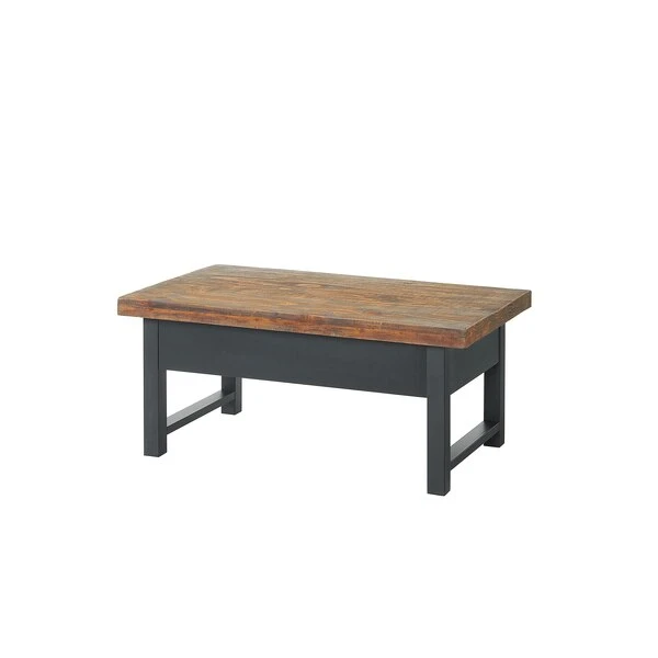The Pomona collection features the exquisite workmanship of a solid wood top with metal legs that will last for years to come. Each piece is constructed of solid pine wood and finished to have the appearance of reclaimed wood. The reclaimed wood finish highlights natural wood variations such as cracks and knots which add to the piece's character. This coffee table with a lift top offers a spacious top surface that lifts up and towards you to create a versatile surface that allows you to work on projects, browse on your laptop, or enjoy a snack all while relaxing from the comfort of your own couch. Any item in this collection will add to the rustic industrial style of any space.