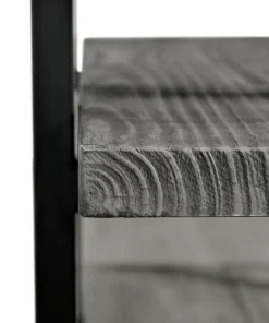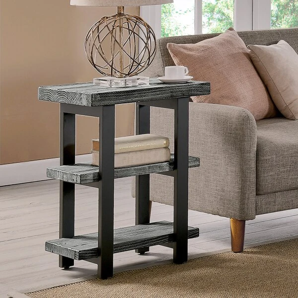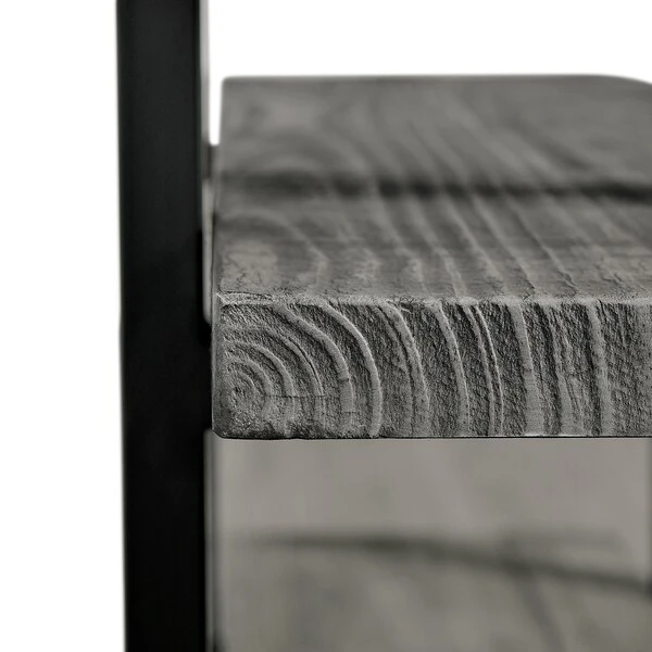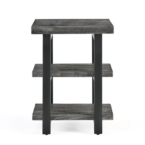 The Pomona collection features the exquisite workmanship of a solid wood top with metal legs that will last for years to come. Each piece is constructed of solid pine wood and finished to have the appearance of reclaimed wood. The reclaimed wood finish highlights natural wood variations such as cracks and knots which add to the piece's character. Any item in this collection will add to the rustic industrial style of any space. The Pomona collection features the exquisite workmanship of a solid wood top with metal legs that will last for years to come. Each piece is constructed of solid pine wood and finished to have the appearance of reclaimed wood. The reclaimed wood finish highlights natural wood variations such as cracks and knots which add to the piece's character. Any item in this collection will add to the rustic industrial style of any space. Pomona 2-Shelf End Table will add warmth to any décor. The Slate Gray finish and design provide a stylish element to your room. Add your favorite lamp, books, magazines, or knick knack to complete your decorating style.
