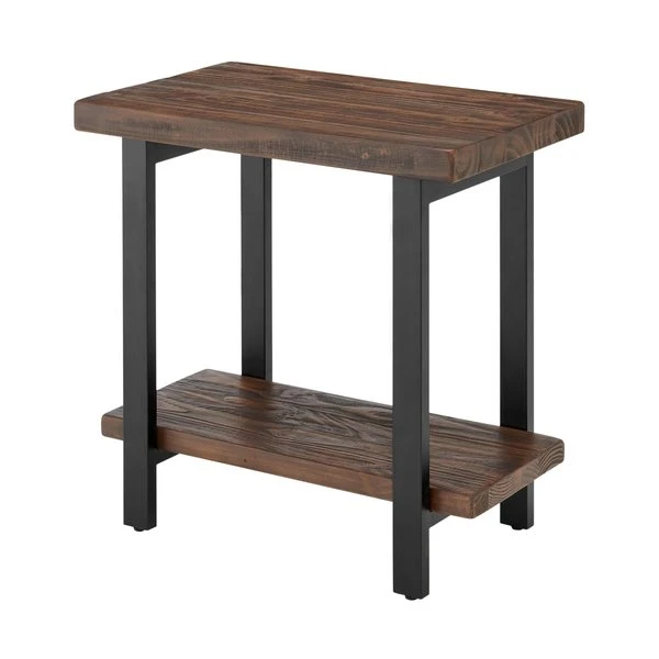 The Pomona collection features the exquisite workmanship of a solid wood top with metal legs that will last for years to come. Each piece is constructed of solid pine wood and finished to have the appearance of reclaimed wood. The reclaimed wood finish highlights natural wood variations such as cracks and knots which add to the piece's character. Any item in this collection will add to the rustic industrial style of any space. Pomona 2-tier end table will add warmth to any décor. The rustic natural finish and design provide a stylish element to your room. Add your favorite lamp, books, magazines, or knick knack to complete your decorating style.