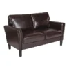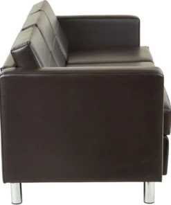 an economical choice for reception seating. Mahogany wood frame with soft leather upholstery. features: color: black/mahogany meets or exceeds ansi/bifma standards supports up to 500 lbs. dimensions: overall width: 44.88" overall depth: 26.13" overall height: 33" seat width: 41.75" seat depth: 22.88" seat height maximum: 17.88" this product arrives to most customers in 2-3 business days.