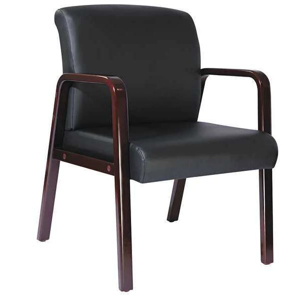 Reception Lounge Series Guest Chair, Mahogany/black Leather