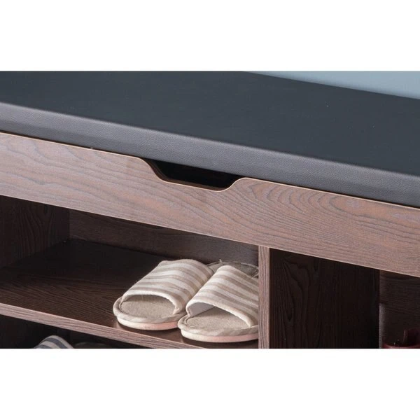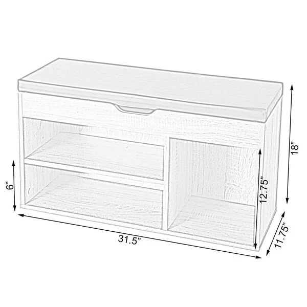 Combine comfort and organization with this wooden shoe Cubicle storage bench. The storage bench has 3 open compartments to store of various size shoes and boots. Top seat offers a soft cushion to sit on and opens up to reveal extra interior storage space to make entryways and mudrooms organized and comfortable. Welcome home.