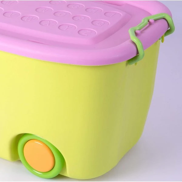 Stackable Toy Storage Box with Wheels is a great storage solution for any kids' bedroom or playroom. Handles and wheels allow you to easily move the toy box from room to room and a grooved lid allows multiple boxes to be stacked securely. Its playful colors will add cheer to your playroom and invite your kids to play.