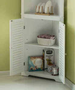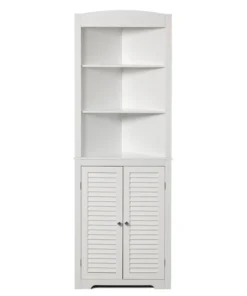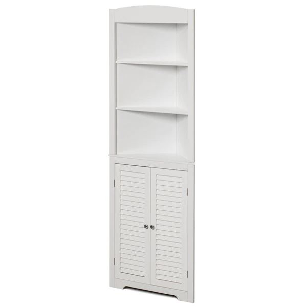 <p>This multifunctional free standing storage cabinet offers reliable storage space. It will perfectly meet your daily needs to keep your linen, towels and other personal morning stuff handy. It creates a simple and modern appearance with its additional storage space. This is also known as a freestanding bathroom storage corner cabinet which is intended to easily grab frequently used items or store out-of-sight items, it will forever satisfy all your demands.</p><ul><li>SIZE: 23.75" W x 12" D x 67.75" H</li><li>FEATURES: Adjustable open shelves for easy access and double shutter doors</li><li>MULTIUSE: Storage cabinet for the bathroom, vanity, bedroom, or office to hold your linen, cosmetics, potpourri, and towels handy</li><li>ELEGANT AND CLASSIC DESIGN: The classic white finish and construction brings a modern and elegant look to any home.</li><li>SPACE SAVING: Our bathroom corner cabinet is made just for that space where you could use a little extra storage room, a perfect addition to your bathroom space.</li></ul>