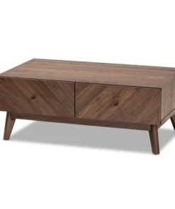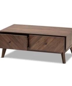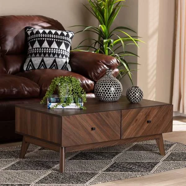 Shape the layout of your living room with the refined, energetic style of the Hartman coffee table. Made in Malaysia, this coffee table exudes natural warmth with its walnut brown finished wood frame. Two drawers offer secure storage for living room essentials while a long, open shelf offers a convenient display space for decorative items. Requiring assembly, the Hartman exhibits a dynamic wood grain to convey a robust visual texture. With a sleek, streamlined design, the Hartman coffee table is a fantastic complement to the modern home.
