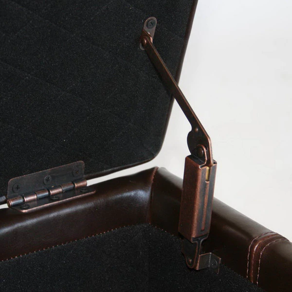 While this rich dark brown ottoman may appear traditional at first glance, it offers an up-to-date storage feature. Flip up the lid of the ottoman to store items necessary for relaxing in your favorite chair.