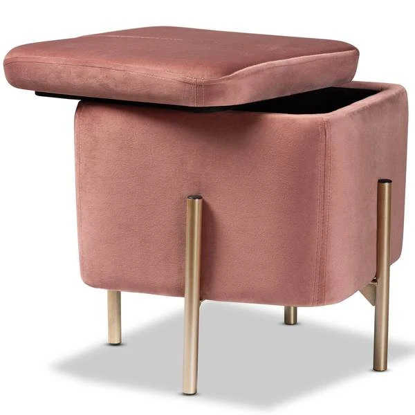Baxton Studio Aleron Contemporary Glam and Luxe Pink Velvet Upholstered and Gold Finished Metal Storage Ottoman