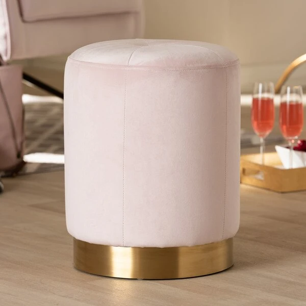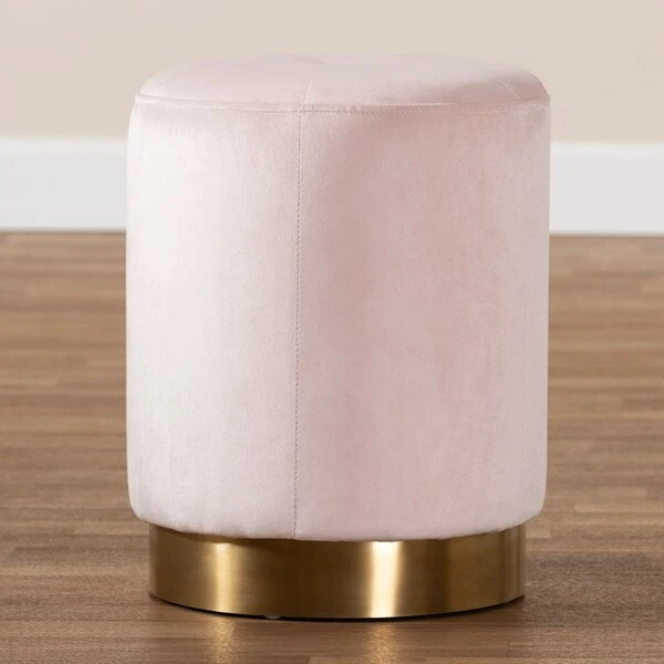 Give any space a hint of glamour with the Alonza ottoman. Constructed from sturdy plywood and stainless steel, the Alonza is upholstered in a rich velvet fabric that is soft to the touch. A striking brushed-gold finish on the base adds a touch of luxury, while a single tufted button on the top highlights the subtle sheen of the velvet. Use this versatile piece as a footstool or as extra seating for guests. The Alonza ottoman will arrive fully assembled.