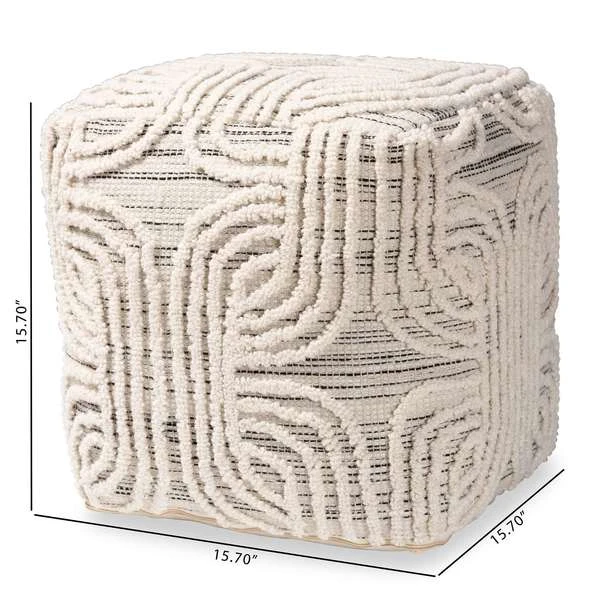 Baxton Studio Arlett ModernBohemian Ivory and Black Handwoven Wool Blend Pouf Ottoman