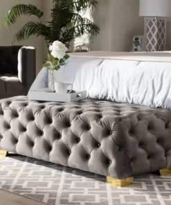 Add glamour to any space with the Avara ottoman. This plywood ottoman is upholstered in a sumptuous velvet fabric that displays a subtle sheen. All-over button tufting and lustrous gold-finished metal legs elevate the Avara to new heights of luxury. Place this stunning piece in the entryway or at the foot of the bed. The Avara bench ottoman will arrive fully assembled.