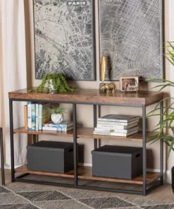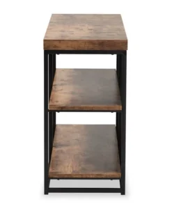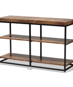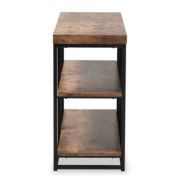 Baxton Studio Bardot Modern Industrial Walnut Brown Finished Wood and Black Metal 3-Tier Console Table