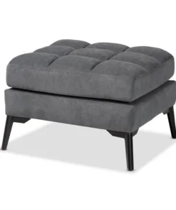 Baxton Studio Belden ModernGrey Velvet Upholstered and Black Metal 2-Piece Lounge Chair and Ottoman Set