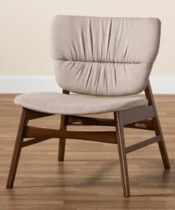 Baxton Studio Benito Transitional Beige Fabric Upholstered and Walnut Brown Finished Wood Accent Chair