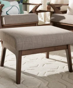 Welcome plush comfort into your home with the vintage style Bianca ottoman. Constructed of durable rubberwood for exceptional durability and stable comfort, the Bianca is upholstered in cool light grey polyester fabric to give it an updated look. Perfect for a modern or minimal interior, the Bianca features smooth angular solid wood frame in dark walnut finishing for a nod to mid-century modern design that exudes warmth. For a coordinated look, pair the ottoman with other pieces in the Bianca range, a stunning lounge set perfect for modern lounges, private offices and receptions. The Bianca requires assembly.