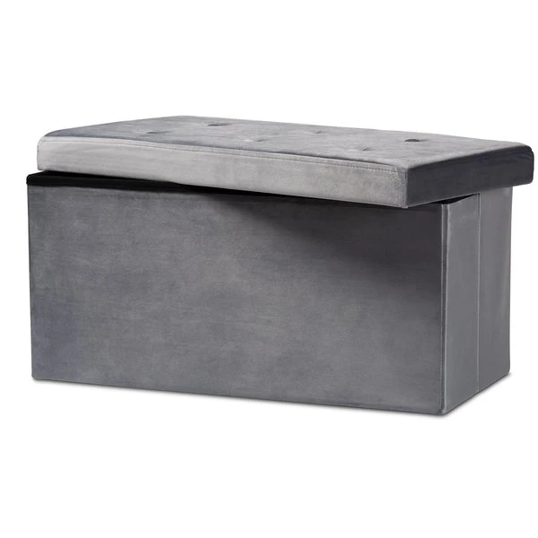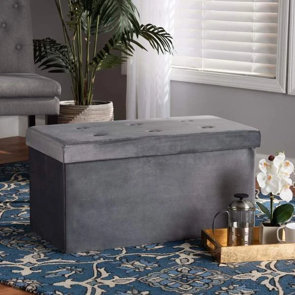 Baxton Studio Castel ModernCharcoal Velvet Upholstered Wood Storage Ottoman