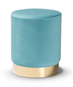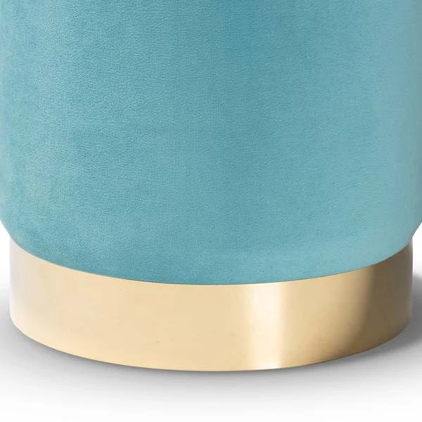 Baxton Studio Chaela Contemporary Glam and Luxe Sky Blue Velvet Upholstered and Gold Finished Metal Ottoman