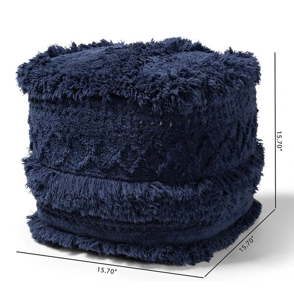 Add a cozy, bohemian touch to any space with the Curlew pouf. Handwoven from a soft, fleece-like cotton, the Curlew features a chic navy hue. Its rich mix of textures adds interest to even the simplest spaces. This versatile piece can be used as a seat, footstool, or casual coffee table.