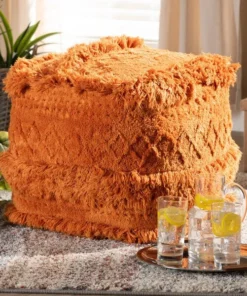Add a cozy, bohemian touch to any space with the Curlew pouf. Handwoven from a soft, fleece-like cotton, the Curlew features a vibrant orange hue. Its rich mix of textures adds interest to even the simplest spaces. This versatile piece can be used as a seat, footstool, or casual coffee table.