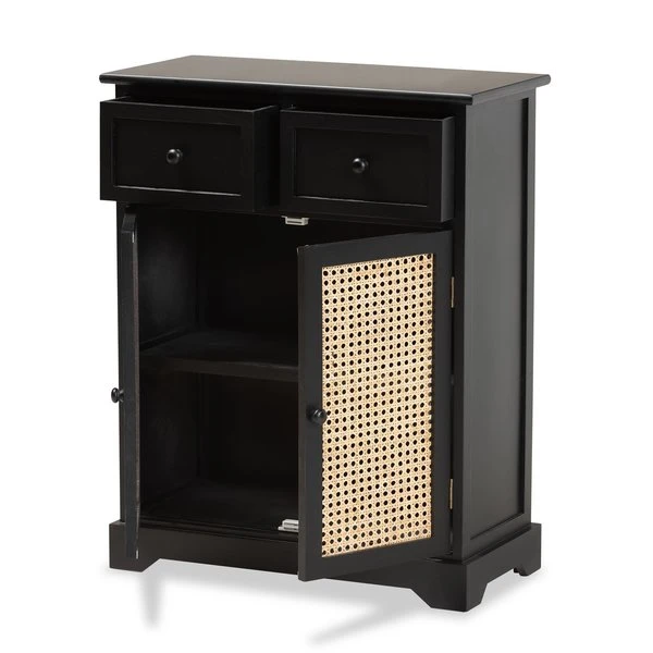 Baxton Studio Dacey Mid-Century Transitional Espresso Brown Finished Wood and Rattan 2-Drawer Storage Cabinet