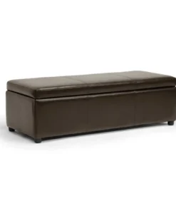 A great accompaniment to a sofa or a fantastic stand-alone item, our Dennehy Dark Brown Modern Ottoman offers contemporary style with old-school attention to craftsmanship. Hard to believe so much value can be had at a discount price. Soft-cornered upholstery and round legs combine for a cozy appearance. A kiln-dried hardwood frame gives it rugged endurance. Plus, plenty of storage and two black flip-top trays.