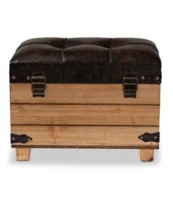 Baxton Studio Edmund Transitional Dark Brown Faux Leather Upholstered and Oak Brown Finished Wood Storage Ottoman