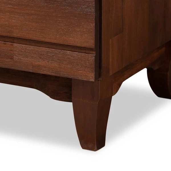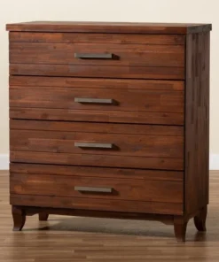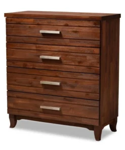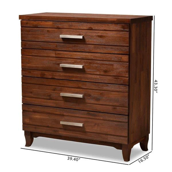 Rich wood tones are on display with the versatile Ella chest. Made in Malaysia, the Ella is constructed from sturdy wood finished in a warm oak brown hue. Four drawers provide excellent storage space to organize clothes, linens, and more. Fully assembled, each drawer is fitted with a sleek silver tone metal handle for easy access. Inset paneling adds texture and depth, while cabriole legs lend a touch of elegance. A handy piece that adds quality storage to any room, the Ella chest is a fantastic addition to the modern home.