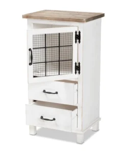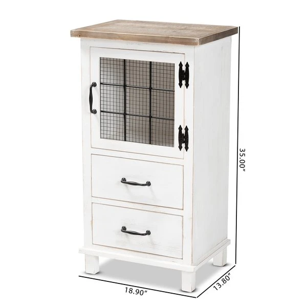 Baxton Studio Faron Traditional Farmhouse Two-Tone Distressed White Finished Wood 2-Drawer Storage Cabinet