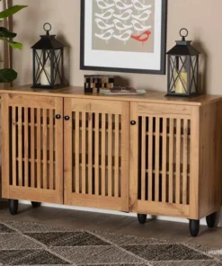 Baxton Studio Fernanda Modern and Contemporary Oak Brown Finished Wood 3-Door Shoe Cabinet