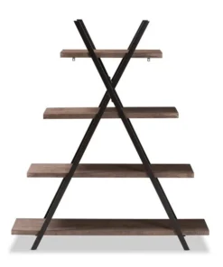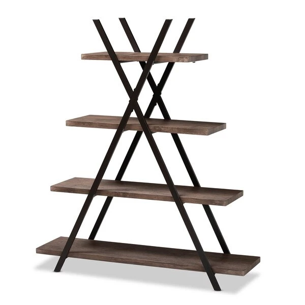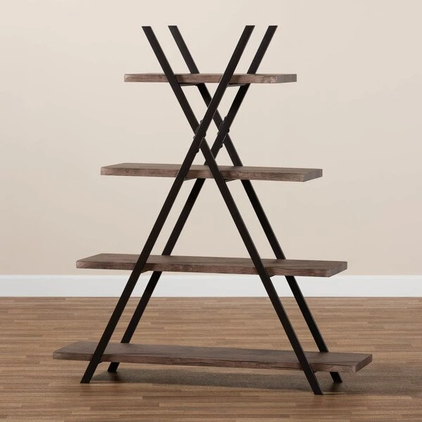Enhance your book collection by displaying it on the stylish Fiera shelf. This wooden piece features rustic walnut finished shelves that complement the black metal frame. Four shelves, of varying lengths, provide ample display space and lend visual interest. The crisscross frame provides solid support and adds a cool, industrial vibe. Requiring assembly, the Fiera shelf livens up any living room or home office.