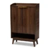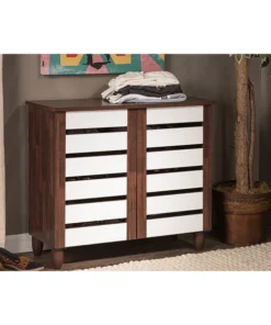 With a compact and elegant design, the Gisela series shoe cabinets from Baxton Studio is perfect for houses with space constraints. Two-tone finish for a modern look in dark oak and white will blend in with a variety of décor schemes easily. Functional and beautiful, it makes for a great addition to your home. The shoe cabinet is solidly built with engineered wood in two-tone oak and white finishing. The shoe cabinet has three shelves with two fixed dividers , two doors and legs made of vinyl. The Gisela shoe cabinet requires assembly.