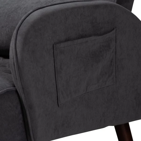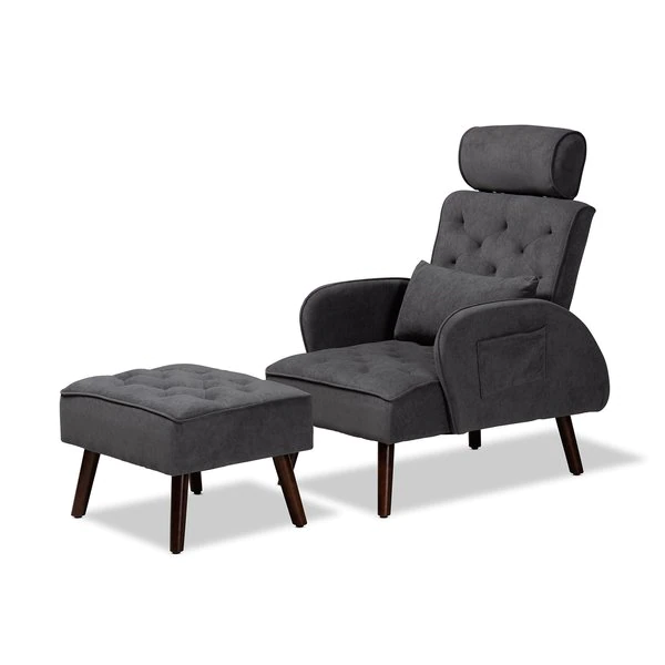 The inviting design of the Haldis chair and ottoman set gives your home a cozy spot to relax and take it easy. Made in China, this set includes one recliner chair and one ottoman made from sturdy wood and upholstered in luscious velvet fabric. The chair features reclining capability for maximum comfort while a convenient side pocket offers space for remotes, books, and more. Requiring assembly, the Haldis radiates contemporary personality with an elegant diamond-tufted design. A delightful and visually stunning addition, the Haldis chair and ottoman set enhances the modern interior.