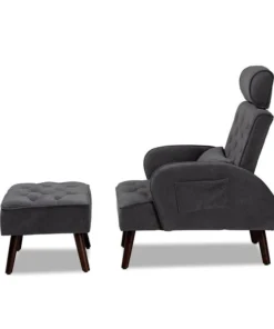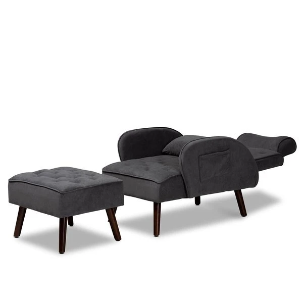 Baxton Studio Haldis Modern Grey Velvet Upholstered and Walnut Brown Finished Wood 2-Piece Lounge Set