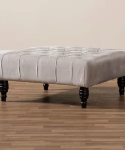 Whether used as an ottoman or coffee table, the Keswick ottoman is an upgrade for any space. Constructed from eucalyptus wood, this chic ottoman is upholstered in rich velvet upholstery that is soft to the touch. The stunning sheen of the velvet is highlighted by button tufting on top, which adds a refined touch. Black turned, fluted legs add classic appeal. The Keswick ottoman will arrive fully assembled.