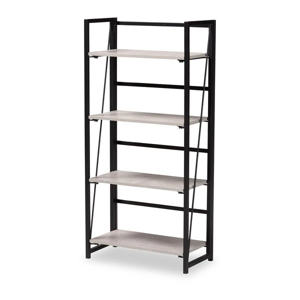 Baxton Studio Lakota Modern Industrial Light Grey Finished Wood and Black Metal 4-Tier Display Shelf