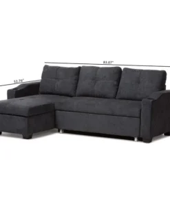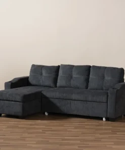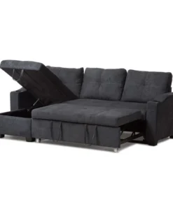 The Lianna sectional sofa has all the right features to meet the needs of modern life. This modern and contemporary-inspired sectional sofa is built to last with wood and metal construction. The Lianna is upholstered in dark grey fabric and comes with removable cushions. The regular seating of the sofa pulls out to give you more legroom or serve as a guest bed. The Lianna features a reversible chaise, which also lifts to reveal storage, perfect for linens, pillows, or whatever else is cluttering the livingroom. The Lianna was made for convenience, featuring cloth handles for the lifting and pulling, as well as cup holders on each arm. Bring comfort, storage solutions, and functional style home with this sectional sofa. The Lianna requires assembly.