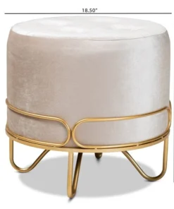 Add a dash of glamour to any space with the Lucienne ottoman. This metal ottoman features a stunning gold-toned frame that gives the piece a light, dainty feel. The seat is upholstered in a rich beige velvet fabric and is button tufted to accentuate the stunning sheen in the velvet. Use this exquisite piece as an extra seat or as a footstool. The Lucienne ottoman will arrive fully assembled.