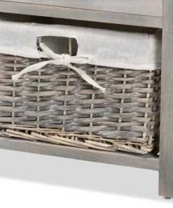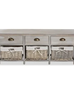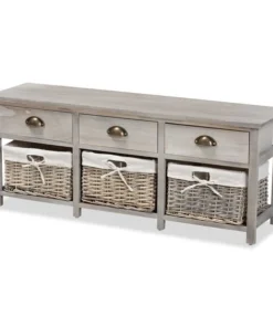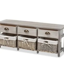Baxton Studio Mabyn ModernLight Grey Finished Wood 3-Drawer Storage Bench with Baskets