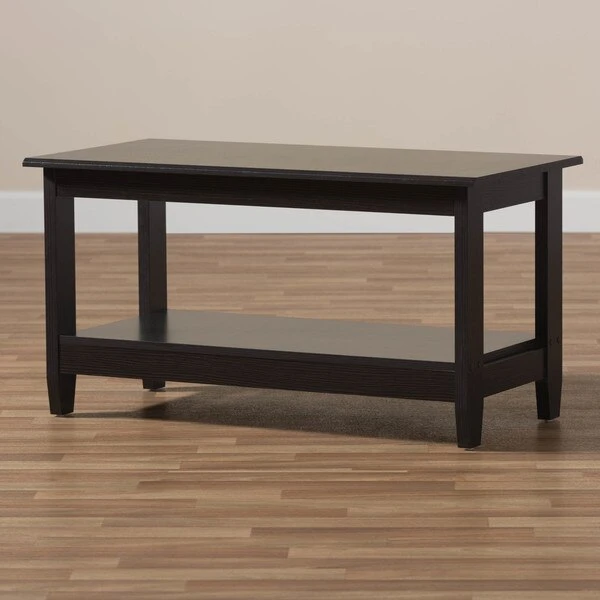 The Malena is the essential coffee table with its minimalist design. The modern and contemporary-inspired design emphasizes clean lines and geometric shapes. The Malena is finished all over in a welcoming, wenge brown. The table features a smooth, rectangular table top, with and open space underneath. The open shelf space beneath the table top is ideal for storage or displaying decor, making the Malena a great option as an accent table. The legs of the table are straight, with slightly tapered feet. The Malena requires assembly.