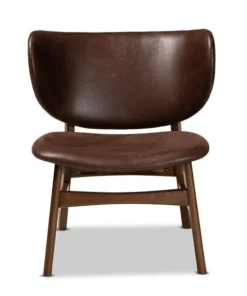 Baxton Studio Marcos Mid-Century Modern Dark Brown Faux Leather Wood Living Room Accent Chair