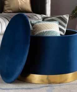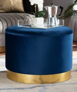 Maximize your storage capacity in the most glamorous way with the Marisa ottoman. Padded with foam for the utmost comfort, the Marisa features a removable lid that reveals ample storage space. Sleek velvet fabric upholstery feels exceptionally soft to the touch and complements the striking gold finish on the base. This chic piece is well suited for use as a footstool or as extra seating. The Marisa ottoman will arrive fully assembled.