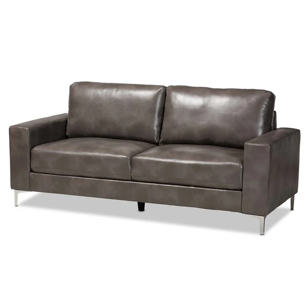 Baxton Studio Rayan ModernGrey Faux Leather Upholstered Silver Finished Metal Loveseat