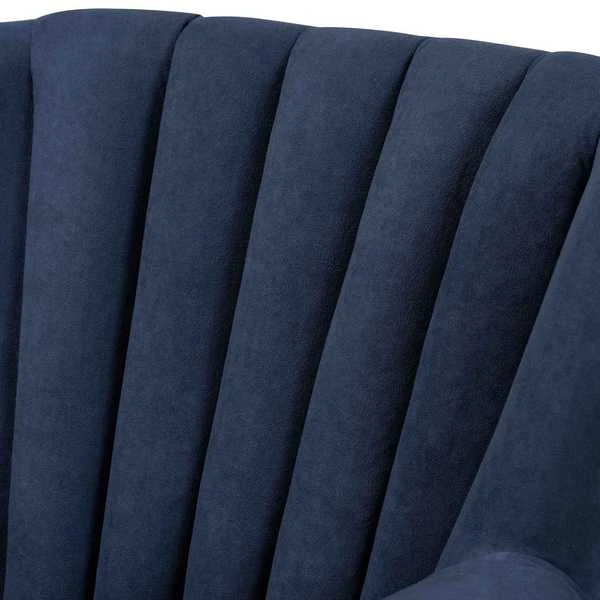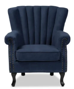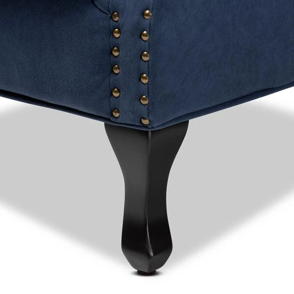 Baxton Studio Relena Traditional Navy Blue Velvet Upholstered and Dark Brown Finished Wood Armchair